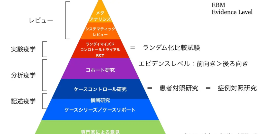 EBPracticeをする場合、RCT以上の階層を活用する。