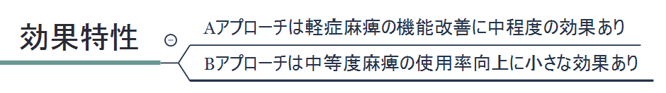 具体的な実践方法や変化(何が何点上がる?)、担当患者にそのアプローチを適応するのが合っているのか(マッチング)は不明です。