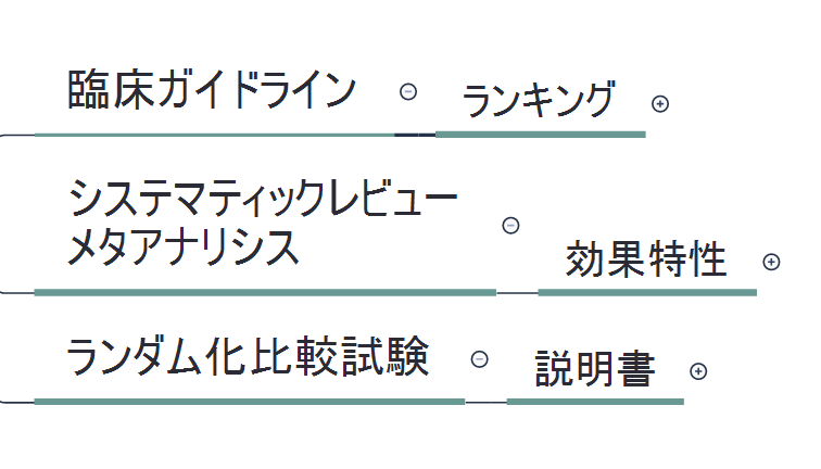 ガイドラインではアプローチについての推奨度が示されています。表現は協会などで異なりますがランキングみたいなものです。これを確認することでアプローチの大筋が見えてきます。