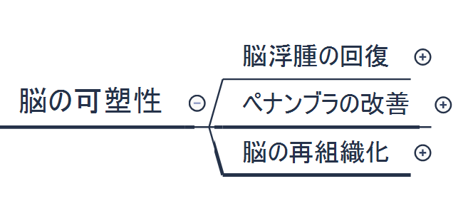 浮腫は脳が膨らんでいること。医学的治療や時間経過によってプシューっとしぼんで元の大きさに戻ることで麻痺が改善します。